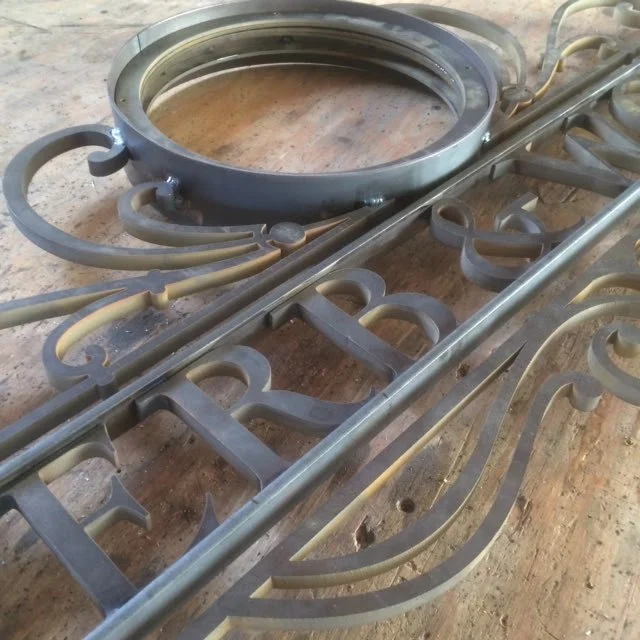 Drawing inspiration from the Eiffel Tower’s triangulated structure, the 3-foot-tall wall sconces feature a lattice-like design supported by central steel stringers, paired with custom hand-blown glass shades by Kathleen Mitchell of Art Hell. The restaurant’s façade is enhanced by two distinctive signs: one in antiqued steel with an illuminated glass globe and another in aged wood, blending industrial elegance with rustic charm for a cohesive and authentic aesthetic.